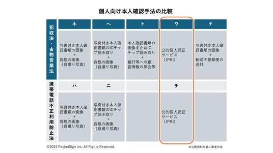 具体的には、これまで本人確認書類(運転免許証など)の画像と容貌の画像(自撮り)の組み合わせなどが受容されていた手続きも、原則としてJPKIによる認証(ワ方式)を求められるようになります。