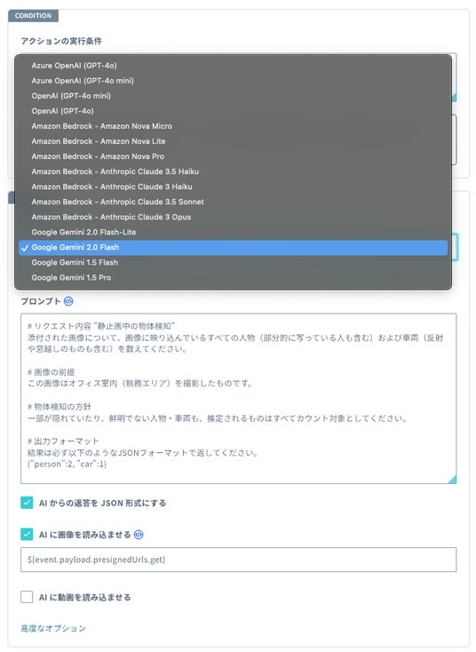 このたび対応したGemini 2.0 Flash は、Googleが開発した生成 AI「Gemini 2.0」シリーズの軽量モデルで、テキストと画像といった複数の情報を扱う「マルチモーダル」に対応しています。IoTで取り扱うセンサーデータやカメラ画像などの多様な情報処理に適しており、軽量ながらも従来モデル(Gemini 1.5 Pro)を上回る性能を発揮します。さらに、Gemini 2.0 Flash-Liteは、機能を絞り込むことで、テキスト生成や画像内の物体検出といった処理において、より高いコスト効率を実現したモデルです。
