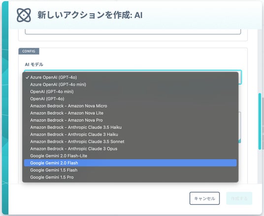 <画面上から、生成AIモデルを選択し、自然言語で指示を入力>