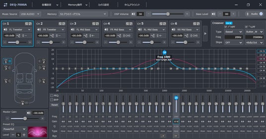 両モデルは、車両の純正オーディオシステムやお使いのナビゲーションシステムに、タイムアライメントやイコライザー、出力レベルの調整など多彩な音響調整能力を追加でき、専用のスマートフォンアプリやWindows PCソフトウェアを使った直感的な操作で理想の音響空間を構築することができます。ハイレゾ再生に対応し、システムの拡張性に優れたハイグレードモデル「DEQ-7000A」には、ソースの切り替えなどを手元で行える専用リモコンを付属。エントリーモデルの「DEQ-2000A」は、車種ごとに最適化された専用セッティングデータを使って、手軽に音質を向上できます。