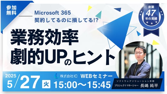 株式会社IC(本社:東京都港区/東証スタンダード4769/代表取締役社長執行役員:齋藤良二)は「Power Platformを活用した業務効率化」について、2025年5月27日(火)15時からオンラインセミナーを開催します。