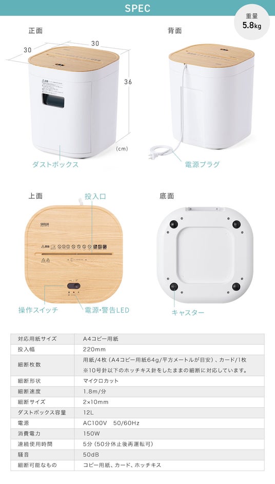 コンパクトでおしゃれな木目調デザインを採用した静音性に優れたマイクロカット対応のパーソナル電動シュレッダー