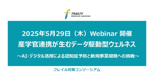 産官学の連携でフレイルの予防改善モデルの構築および社会実装を目指す「フレイル対策コンソーシアム」(事務局:合同会社ネコリコ、株式会社JDSC)は、ウェビナー「産学官連携が生むデータ駆動型ウェルネス ~AI・デジタル活用による認知症予防と新規事業開発への挑戦~」を2025年5月29日に開催します。