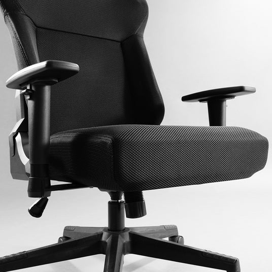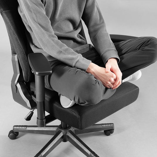 ヘッドレスト&ランバーサポートを敢えて撤去。その分、背部そのもののクッション性にこだわることで、頭から腰まで包み込まれるような座り心地を実現しました。通気性に優れたメッシュ生地を採用している点もポイント。汗をかいても蒸れにくく、快適なゲームプレイをサポートします。