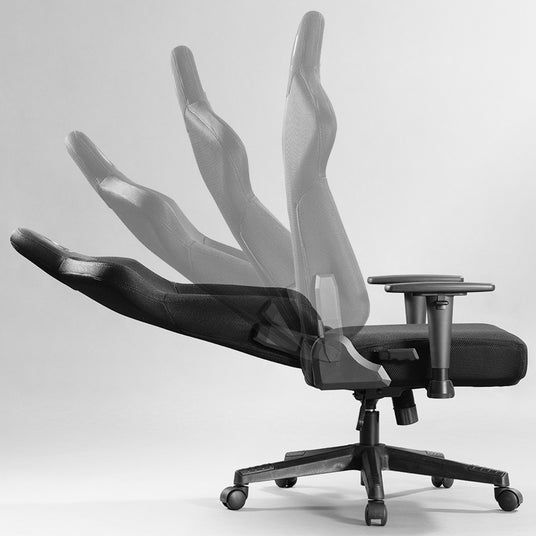 背もたれは、最大155度までリクライニング可能。長時間のゲームプレイや、休憩時のリラックス姿勢に対応。