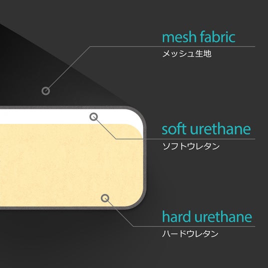 座面部は、硬さの違う2種類のウレタンを貼り合わせることで、しっかり厚みを持たせています。着座時の沈み込みを軽減し、長時間座っていても底づき感を感じにくい仕様にこだわりました。