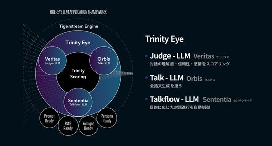 本製品には、TIGEREYEが出願中の「対話状況適応型AI技術」に基づく独自LLMアーキテクチャが搭載されており、ユーザーの理解度・興味・感情状態をリアルタイムにスコアリングして応答を動的に最適化する、かつてない対話体験を提供します。