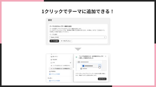 ワンクリックでテーマに組み込み!すぐにストアへ反映できます。