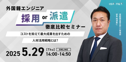 アイエスエフネット、5/29(木)14時より「外国籍エンジニア『採用 or 派遣』徹底比較セミナー~コストを抑えて最大成果を出すための人材活用戦略とは?~」を開催