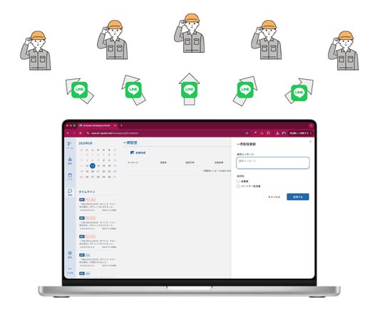 新たにメニュー項目「連絡」が追加され、登録された従業員・協力会社へLINE一斉配信機能が追加されました!