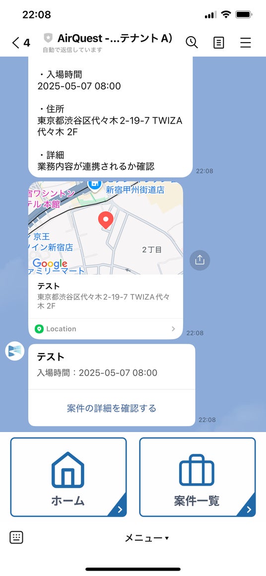 従業員や協力会社に届くLINEのメッセージ内容に案件を詳細が記載されるようになりました。