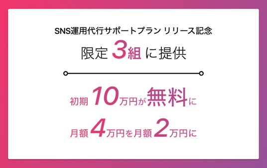 スペースリー未導入のお客様を対象にSNS運用代行サポートプランを初期費用無料&50%オフ(月額4万円を2万円)で提供いたします。