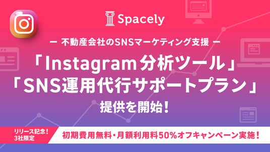 リリースを記念し、抽選で3社限定で初期費用無料・月額利用料50%オフとなる特別キャンペーンも実施いたします。今後もスペースリーは不動産事業者のSNSマーケティング強化を支援してまいります。