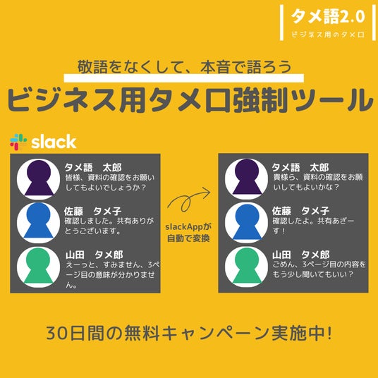 Slackの“チクチク言葉”を変換する第一弾プロダクト『タメ語2.0』を提供開始