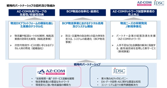 本発表にあたりAZ-COM丸和ホールディングス 代表取締役社長 和佐見 勝は次のように述べています。「今回の提携を非常に嬉しく思っています。JDSC様とは2024年からプロジェクトで一緒に活動しておりますが、一般的なコンサルティングファームやAIベンチャーとは異なり、ビジネスデベロップメント、データサイエンス及びエンジニアリングの三位一体のチームから一気通貫の支援を受けることができ、実際の改善効果も見込まれています。今般、中長期的なDX戦略パートナーシップという形での提携関係強化により、本業の収益力強化、新サービス開発、そして豊かな社会つくりへの貢献に繋げていくことを期待しております。」