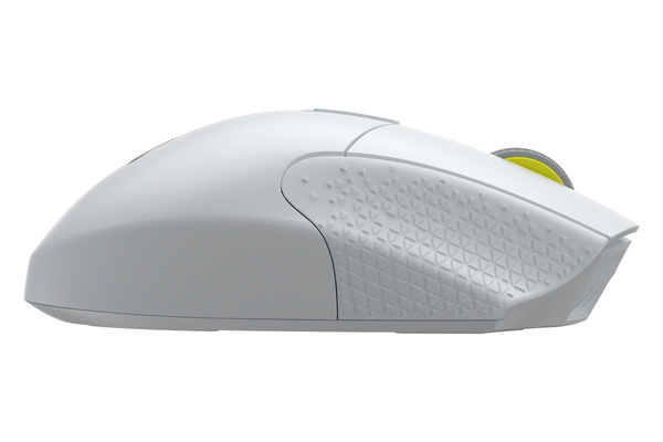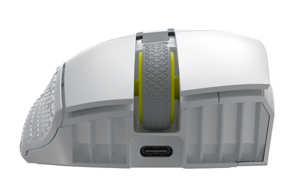 従来ではブラックモデルのみでしたが、本機よりホワイトモデルが追加されました。ベースはホワイトで、ホイールにはグレーとCORSAIRを象徴するイエローを採用。多ボタンも、薄いグレーと濃いグレーが採用してあり、統一感があります。