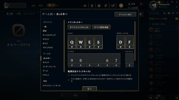 リーグ・オブ・レジェンドにおいては、現状ちょっと便利くらいでMMORPGと比べると劇的に操作性が向上したという感じは減りますが、いろいろとボタン配置を考えて自分のベストを見つけることができれば、より快適性は増すんじゃないかと期待しています。