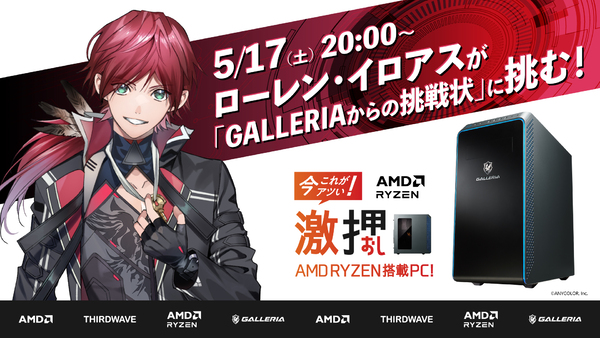 番組中には、AMD Ryzen搭載のGALLERIAデスクトップ製品の購入時に利用できる割引クーポンが配布され、性能と安定性を体感する良い機会となっている。また、ローレン・イロアス氏が実際に使用するPCもAMD Ryzenが搭載されたGALLERIAであり、視聴者はその信頼性を自身で確認可能だ。