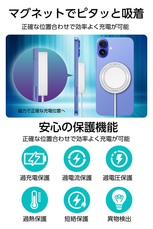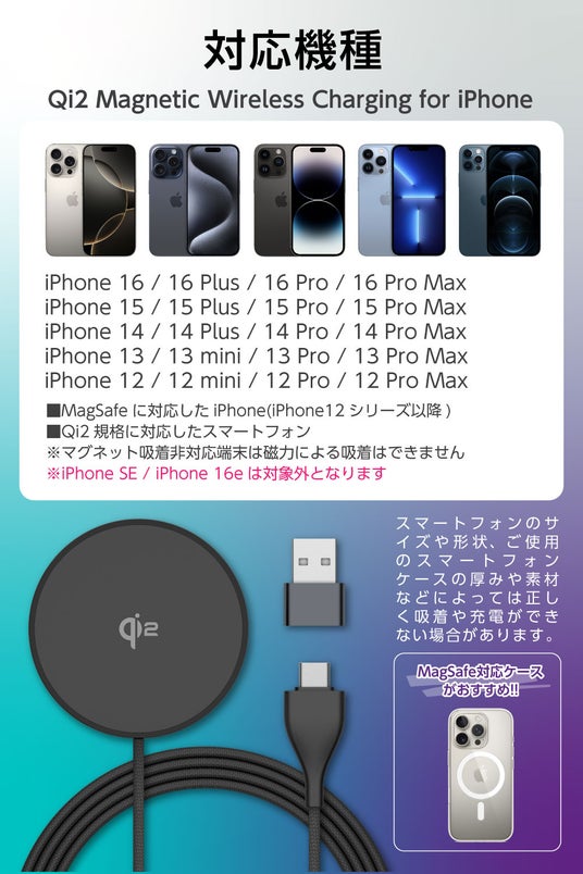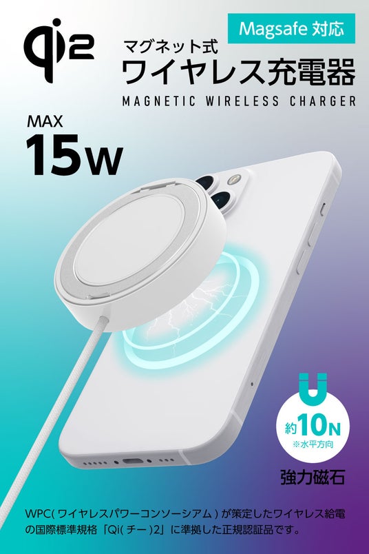 ● 次世代のワイヤレス充電規格「Qi2」に対応し、最大15W(※)の充電が可能