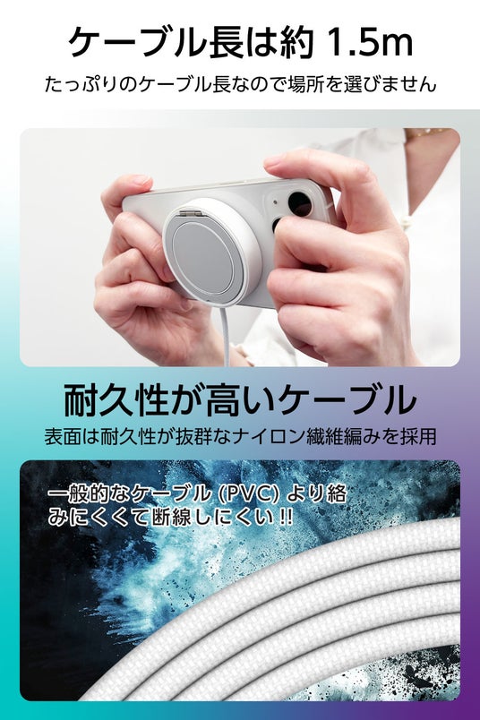 ケーブルは高耐久のナイロン繊維編み1.5m