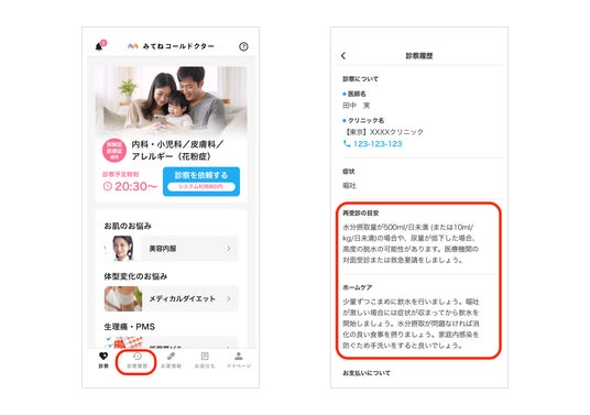 オンライン診療アプリ「みてねコールドクター」新機能追加!医師からのアドバイスが診察後にも確認可能に