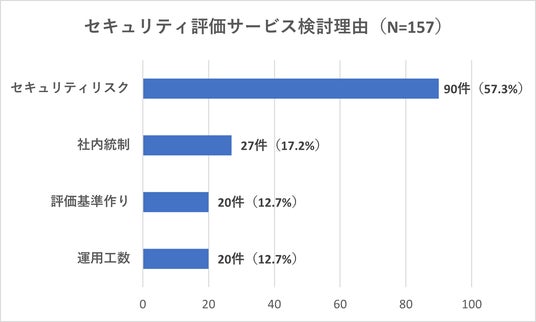 SaaS導入においてセキュリティ評価は欠かせないプロセスとなっており、実際に導入した企業が、セキュリティ評価サービスを検討する最大の理由は「セキュリティリスク」(57%)でした。