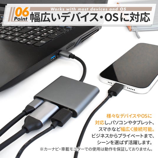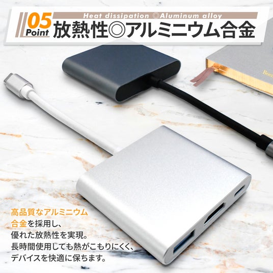 【HDMI・USB Type-C・USB3.0の3ポートを搭載した変換アダプタ】