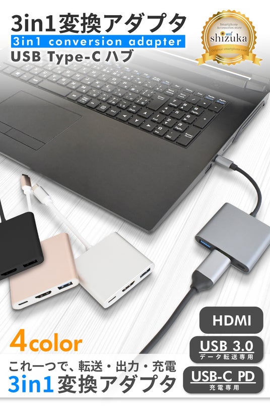 【シズカウィル】これ1つで 映像出力・データ転送・充電 ができる!3in1変換アダプタ( HDMI・USB3.0・USB Type-C )が新登場!