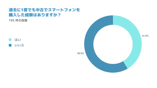 中古スマホを購入したことがある人は81人(41.5%)、購入したことがない人は114人(58.5%)と半数以上となりました。