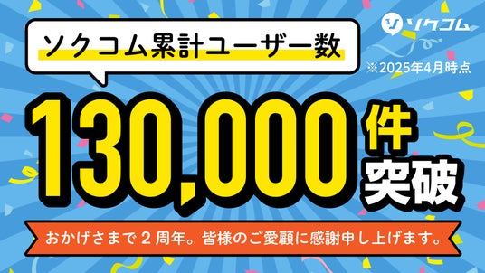 Foonz株式会社(本社:神奈川県横浜市西区、代表取締役:星野 純一、以下「Foonz」)が提供するオムニチャネル型コミュニケーションプラットフォーム「ソクコム(https://sokucom.cloud/)」は、2025年4月時点で累計ユーザー数が130,000件を突破したことをお知らせいたします。