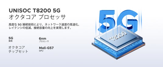 最新のUNISOC T820(8コア / 2.3GHz / 6nm)を採用し、次世代5G通信に完全対応。最新OSのAndroid 15で、よりスムーズかつ安全なスマホ体験を提供します。