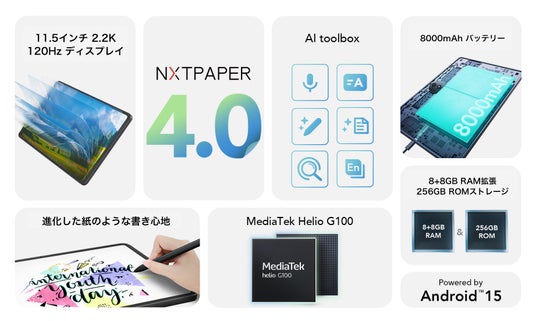 紙のような自然な見え方と質感を実現し、目への負担を軽減しながら、鮮やかなフルカラー表示を可能にします。本プロジェクトは、NXTPAPERシリーズとして日本市場での本格展開第1弾となります。