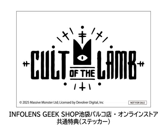INFOLENS GEEK SHOP池袋パルコ店またはオンラインストアにて「Cult of the Lamb」の商品を税込5,500円以上ご購入いただいた方に【オリジナルロゴステッカー】を1会計に1枚プレゼント!