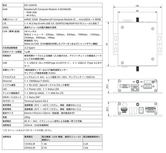 自律走行搬送ロボットや次世代小型モビリティなど、小さな機体への搭載性にも優れています。また、CANポートやイーサネットポートなどからのデータ入出力によって、intdashを組み合わせた遠隔監視や遠隔制御を行うターミナルデバイスとして活用できます。
