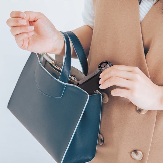 女性の片手にもすっぽり収まるサイズでバッグやポーチなどにもかさばらず収納可能だから、夏のキャンプ、野外ライブ、スポーツ観戦、BBQ、フェスなど、暑さがつきまとうあらゆるアウトドアシー