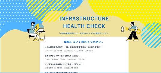 こうした背景を踏まえ、今回当社では企業のITインフラの現状を診断できる専用ページを制作しました。
