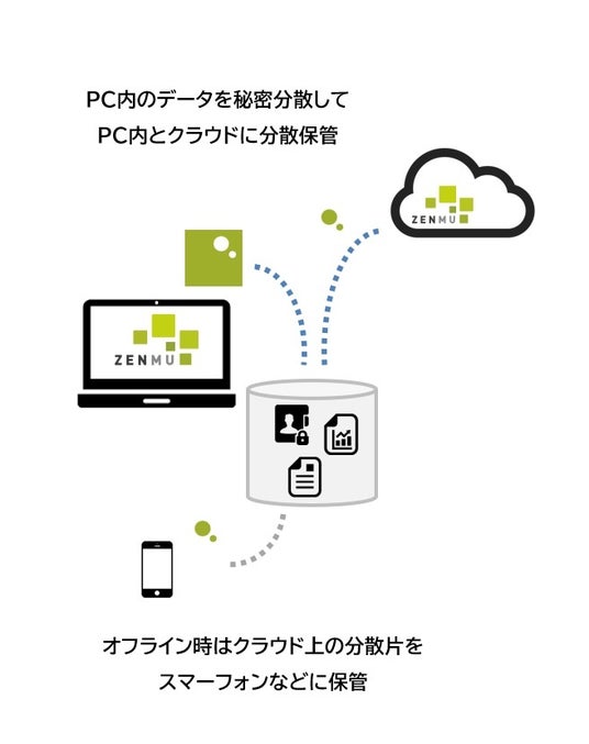 秘密分散技術により、ユーザーデータを無意味化して分散保管することで、情報漏洩を抑止することが可能