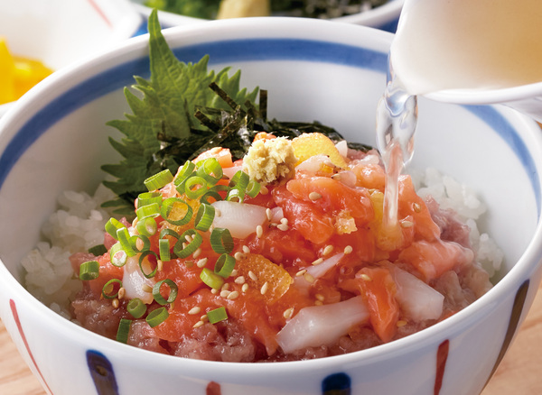 「涼」を味わうメニューとしては旨味ある海鮮を好みの食べ⽅で楽しめる「四種海鮮丼のだし茶漬け」(1065円)、澄んだスープにツルっとさっぱり麺と焼肉丼が楽しめる「蒸し鶏の盛岡冷麺とコチジャン焼肉丼」(988円)が登場する。