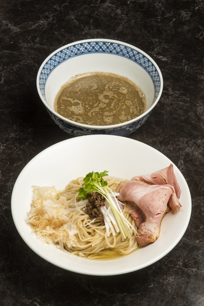 店の自慢の煮干しスープに、川越の地ビールとして有名な「COEDOビール」を入れてビールの香りを反映させたつけ汁のスープが秀逸。そこに生醤油「川越搾り」と「弓削多醤油」の燻製しょうゆを使った醤油を入れるが、ビールの香りはそのままに、醤油の芳醇な香りと旨味もマッチ。繊細な構成のつけ汁を見事に作り出す店主の腕に脱帽させられる内容だ。また、麺の上には香りのいいトリュフや川越産の鶏節ものせ、味はもちろんのこと、さまざまな香りも楽しむことができるつけ麺になっている。