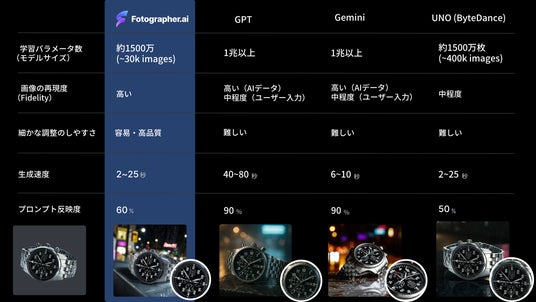 「他の代表的な画像生成モデル(GPT、Gemini、UNOなど)と比較した際、ZenCtrlは特に『細かな調整のしやすさ』『生成速度』および『画像の再現性』において大きな優位性を持っています。」