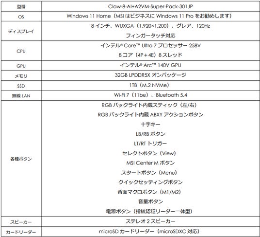 ・Claw 8 AI+ A2VM シリーズ製品ページ:https://jp.msi.com/Handheld/Claw-8-AI-Plus-A2VMX