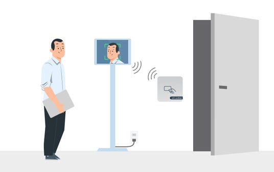 顔認証での入室に対応したフロア顔認証で入室する様子