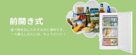 前開き式の直立デザインを採用し、収納物が一目で見やすく取り出しも簡単。**特に目線の高さに置いた食材は出し入れがしやすく、整理整頓もしやすい構造です。スリムでコンパクトな設計なので、キッチンや限られたスペースにもすっきり収まり、毎日の使いやすさをサポートします。