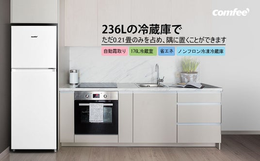 大容量236Lと自動霜取り機能で、毎日をもっと快適に。COMFEE'のスマート冷蔵庫で、収納もお手入れもストレスフリーに。
