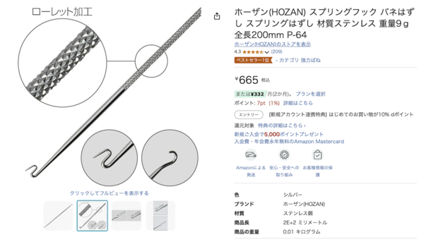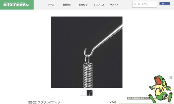 2つのスプリングフックの違いは、フック部分の形状。SS-21は先端がジグザグに曲げられており、主にバネを押し伸ばすときに使いやすくなっています。