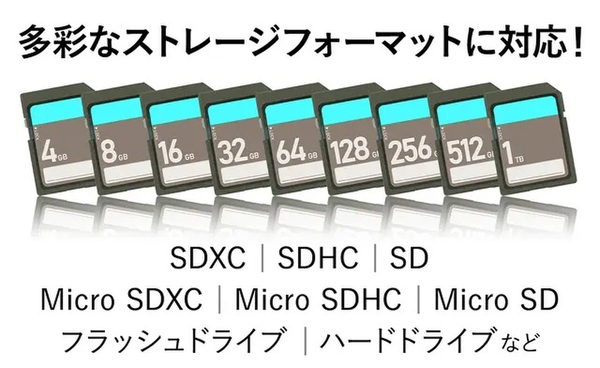 多機能設計で、SD&MicroSDカードリーダーおよびUSBポートを搭載、最大10Gb/sの高速で多重のデータ転送が可能。さらに大容量収納を実現し、SDカード4枚、MicroSDカード12枚、nanoSIMカード4枚にも対応します。