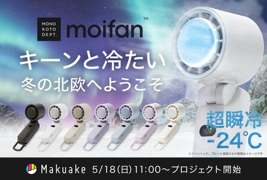 【24時間で目標金額1,500%達成・ランキング1位】"超瞬冷 -24℃" 次世代クーリングハンディファン「moifan(TM)」が応援購入サイト「Makuake」(マクアケ)にて先行販売開始!