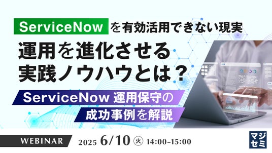 マジセミ株式会社は「「ServiceNow」を有効活用できない現実、運用を進化させる実践ノウハウとは?」というテーマのウェビナーを開催します。