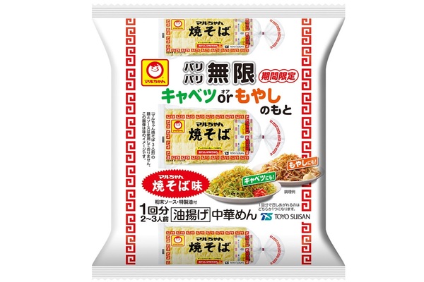 東洋水産は「マルちゃん パリパリ無限キャベツorもやしのもと マルちゃん焼そば味 1回分」(200円)を6月1日より、期間限定で発売する。