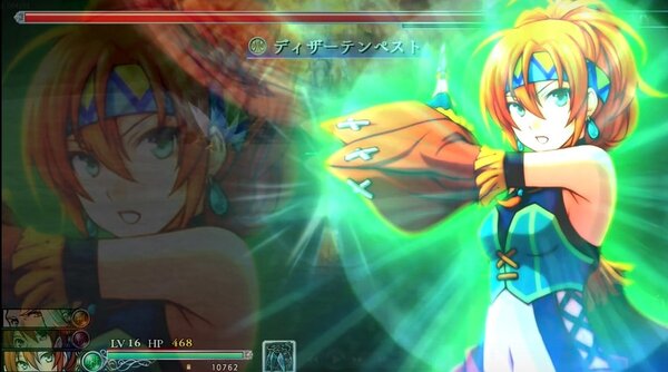EXTRAゲージが溜まっていると出せるEXTRAスキル。威力が高いのはもちろん、広範囲にダメージ判定があるので、通常の戦闘、ボス戦、ともに役立つ。ちなみに、初期状態ではL+Rボタンの同時押しで出せるが、ゲーム設定で1ボタンに変更できる